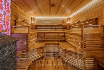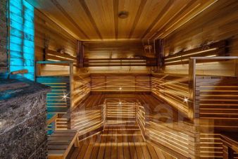На территории участка расположен гостевой дом с банным комплексом площадью 190 кв.м., полностью готовый к проживанию. Баня 12 кв.м. выполнена из канадского кедра с оборудованием Gefest. Планировка гостевого дома включает в себя просторный зал с кухней со вторым светом, две спальни и спа-зону с бассейном.