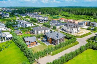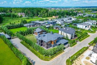 Дом площадью 520 кв.м. выполнен в классическом стиле Райта, построен был в 2023 году по современным технологиям строительства, фасад здания облицован каменным клинкером производства компании King Klinker и деревянной фасадной доской, сделана входная группа с широкой лестницей и навесом под 2 автомобиля, крыша выполнена из композитной черепицы. В данный момент идут чистовые отделочные работы внутри дома. Планировка дома включает в себя просторный зал с обеденной зоной, четыре комфортные спальни и зону отдыха, обеспечивая достаточное место для всей семьи и гостей. Высокие потолки, достигающие 3,5 метров, и большие окна придают комнатам ощущение простора и воздушности.