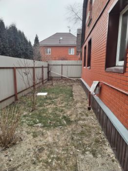 Безопасность обеспечит забор по периметру дома. Для вашего удобства во дворе помимо зеленой зоны есть участки для пешеходной зоны, выложенные плиткой и огороженные заборчиками.