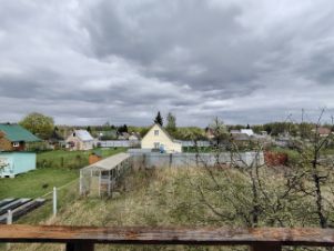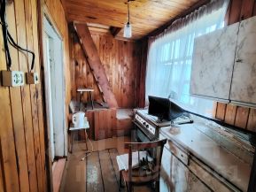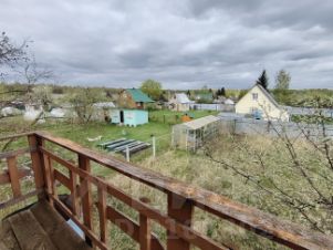 На первом этаже - терраса, комната, кухня; на втором одна большая комната. Есть балкон, с красивым видом на территорию. Свет в дом подведен.