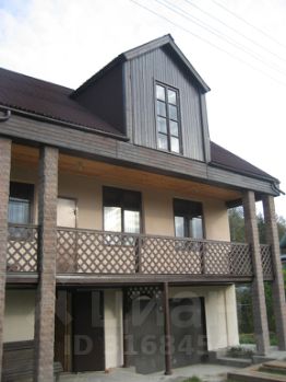 Первый и второй этажи - кирпич, третий этаж - дерево.