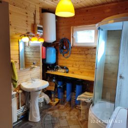 Деревянный домом для круглогодичного проживания 100 м.кв. из профилированного бруса 150 мм, с эркером, двумя балконами и беседкой, со всеми удобствами и оборудованием. На ухоженном участке 6 соток (с шикарным газоном). Система отопления тройная: 1) Катодный электрический котёл с разводкой по дому батареи (первый и второй этаж) 2) Камин и печь (на дровах) 3) кондиционер с зимним пакетом (на втором этаже). Вода - свой колодец с подводкой в дом (с тройной системой фильтрации). Стиральная машина (на 5 кг), Новая душевая кабина с крышей. Утепление: двойные стеклопакеты, двойной утеплитель на потолке второго этажа, на первом этаже двойные деревянные полы и сверху утеплитель и ламинат (сосна). Полноценная кухня с утварью и принадлежностями, плита (газ), духовка (электро). Холодильник большой LG (двух камерный) + микроволновка + встроенная посудомоечная машина + большая морозильная камера. Большой телевизор. Оптоволокно интернет. На втором этаже - два встроенных/врезанных шкафа и две потайных хоз ниши. Дом полностью укомплектован - въехал и живи.