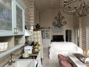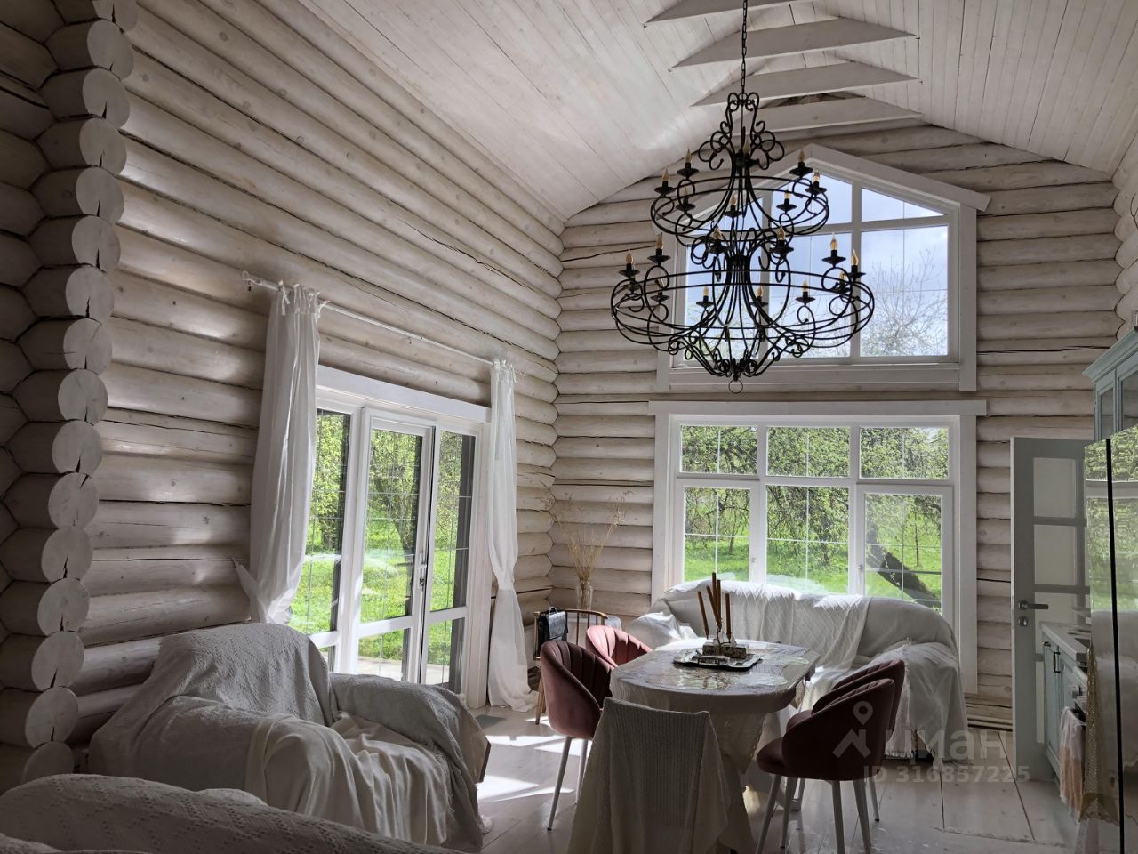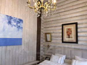 Высота потолка в гостиной 5 (метров), в спальнях потолок скошенный (нижняя точка 2,63, верхняя 4,76 м).