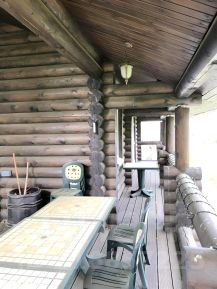 Жилой дом из оцилиндрованного бревна (диаметр 220 мм): - размеры по краям 12,4 на 14,7 метров (рубка в чашу). Фундамент - свайный. Полы -с утеплением. Веранда и выход на террасу. Отопление - электрический котёл (решается вопрос по газификации деревни). Водонагреватель. Своя скважина (131 метр). Напротив дома - деревенский колодец. В доме стоит фильтр на воду. Переливной септик (3 шт.)