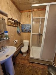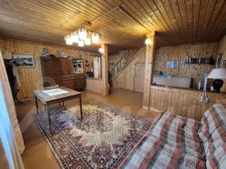 Дом из бревна, 2 этажа, светлый и просторный, общая площадь 111 кв.м. На первом этаже терраса, кухня, гостиная, спальня и сан/узел, на втором этаже две комнаты и холл. Дом обустроен и меблирован.