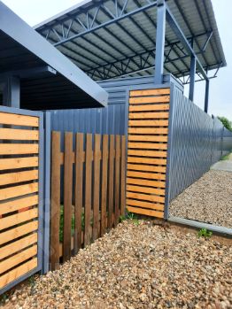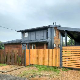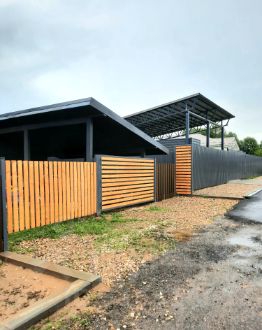- Парковка на три машины.Одна под навесом,вторая - рядом с первой,третья - между ворот и дорогой.