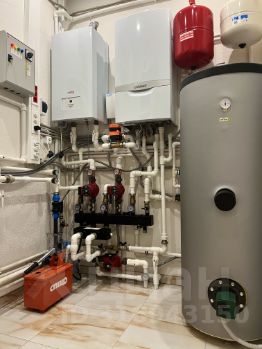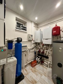 Отопление - газовый котел (газгольдер 5 м.куб.) и электрический котел, управление со смартфона.