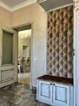 Внутренняя отделка дома выполнена из дорогих, качественных материалов: керамогранит, керамическая плитка, венецианская штукатурка, декоративная подсветка потолков, кованые перила, качественные двери подобраны в соответствии с дизайнерским решением. План дома