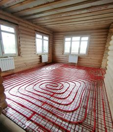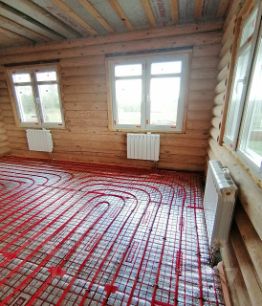 На первом этаже полностью разведен ТЕПЛЫЙ водяной ПОЛ.