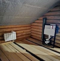 Санузел на каждом этаже. Также заведены коммуникации воды в одну из комнат на втором этаже.