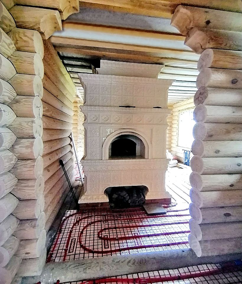 В дом заведена вода, электричество. Отопление электрическое, но можно будет перевести на газовое, когда будет газ (ожидается, в перспективе). Также, дом можно будет отапливать дровами. Очень красивая дровяная печь, изготавливалась под заказ.
