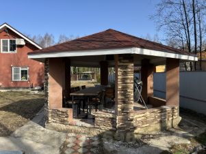Дом площадью 111 м2 огорожен забором , стоит на отдельном участке с личной мангальной зоной и беседкой. На первом этаже расположены прихожая, гостиная (зал), кухня-столовая, душевая комната, на 2-м этаже две изолированных спальни. Дом полностью укомплектован мебелью и бытовой техникой для круглогодичного проживания.