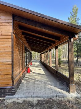На территории поселка нынешним собственником - юр.лицом возведен банкетный зал площадью 316 м2 с несколькими входами, кухонной зоной, барной стойкой и комнатой чилл-аута, 8 беседок со сценой для проведения мероприятий, а также дом для размещения постояльцев, своя котельная, несколько подсобных строений, отдельная летняя кухня.