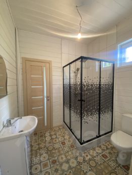 Удобная планировка - три изолированные спальни, просторная кухня-гостиная, санузел . Большие панорамные окна в гостиной и кухне создают уют, дом очень светлый и солнечный. Коммуникации заведены и разведены по дому: электричество 15 КВ,теплый пол, канализация-септик Аквалос 4, вода из колодца, отопление от электрического котла. Участок ровный, правильной формы, огорожен забором из профлиста, установлены ворота и калитка.
