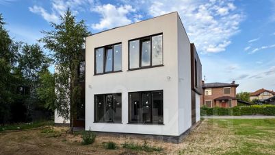 Выполнена наружная отделка в современном стиле, установлены окна РЕХАУ, участок выровнен и засеян газоном.