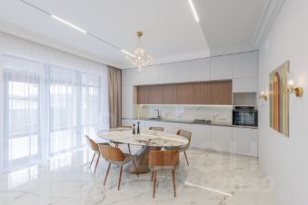 Продажа загородного дома площадью 240 кв.м. на участке 6 соток в самом центре поселка. Особенностью дома являются высокие потолки, панорамные окна, функциональная планировка.