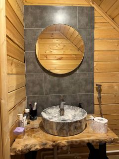 Внутри дома есть все необходимое для комфортного проживания, вся мебель также остаётся. В доме на первом этаже расположена настоящая баня (не сауна. дровяная печка Feringer, обшитая натуральным камнем - очень крутая), печка выходит в гостиную - получается очень уютный камин.