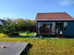 1 собственник, 7 соток, одноэтажный дом 6х8 из профилированного бруса камерной сушки 150х150, пол 150мм, потолок 150мм, очень теплый дом, подходит для круглогодичного проживания. скважина, электрические ворота. гараж 5х7, монолитная плита, деревянный каркас, электричество 15 кВт, кабельный интернет. очень широкие улицы. много хвойных деревьев на участке. мангальная зона. парковка на две машины из асфальтовой крошки. в доме есть бойлер, стиральная машина, электрическая плита, 4 конвектора для обогрева. одна двухъярусная кровать и одна двухспальная кровать, холодильник. дом обшит металлическим сайдингом с дополнительным утепление 50мм, есть чердак можно использовать как склад. на участке есть место для постройки большого дома. торг