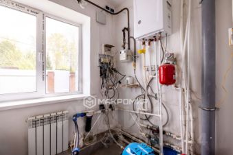 Коммуникации: Свет 15КВт, вода (скважина), канализация - септик, дом газифицирован (магистральный, заведен в дом, оборудование установлено), охрана и сигнализация. Участок - ИЖС размером 5 соток (фактически в пользовании 7 соток) с соснами и березами огорожен - забор, ворота, заезд под машину. Подъезд - асфальтированная дорога.