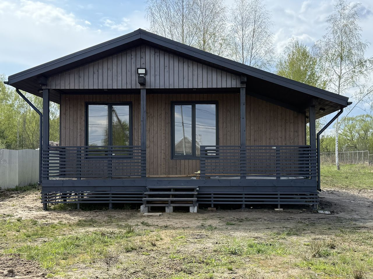 Продается дом площадью 81,2 кв.м с панорамными окнами и участком 25 соток с возможностью прописки в Московской области.