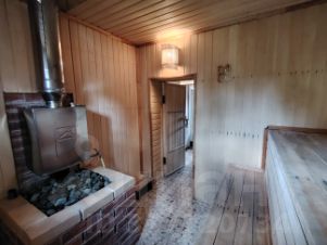 Дом баня построена в 2020г из пеноблока, на ленточном фундаменте, снаружи обшита сайдингом, внутри вагонкой +сайдинг, пол в бане- плитка, в комнате -линолеум.