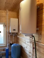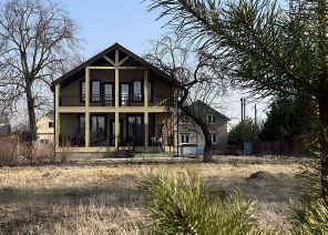 Коттедж 220 кв.м. 2-этажный. Строился по проекту профессиональной строительной компанией. Фундамент — ж/б сваи 6 м, крыша — утеплена, сверху металлочерепица, стены — брус 20 см плюс утеплитель.