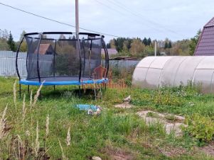 Участок 8,5 сотки, трапециевидной формы. Сделано межевание. Участок чуть под наклоном, а значит всегда будет сухим. Со всех сторон обнесен забором из металлического профлиста, есть место для парковки автомобиля. На участке стоят 2 беседки, качели.