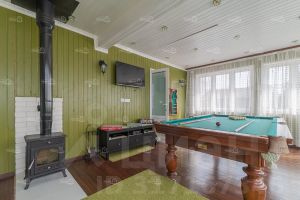 Двухэтажный загородный коттедж 350м2. В доме пять спален с мебелью, на каждом этаже по санузлу, есть игровой зал с русским бильярдом и дровяной печью-камином. На первом этаже из технической комнаты предусмотрен выход в гараж (30м2). Есть терраса для дружных посиделок.