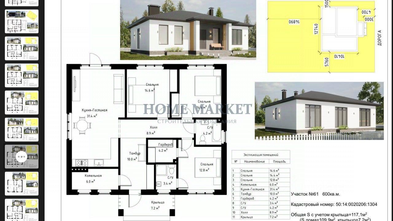 Планировка: кухня гостиная, 3 спальни, котельная, санузел.