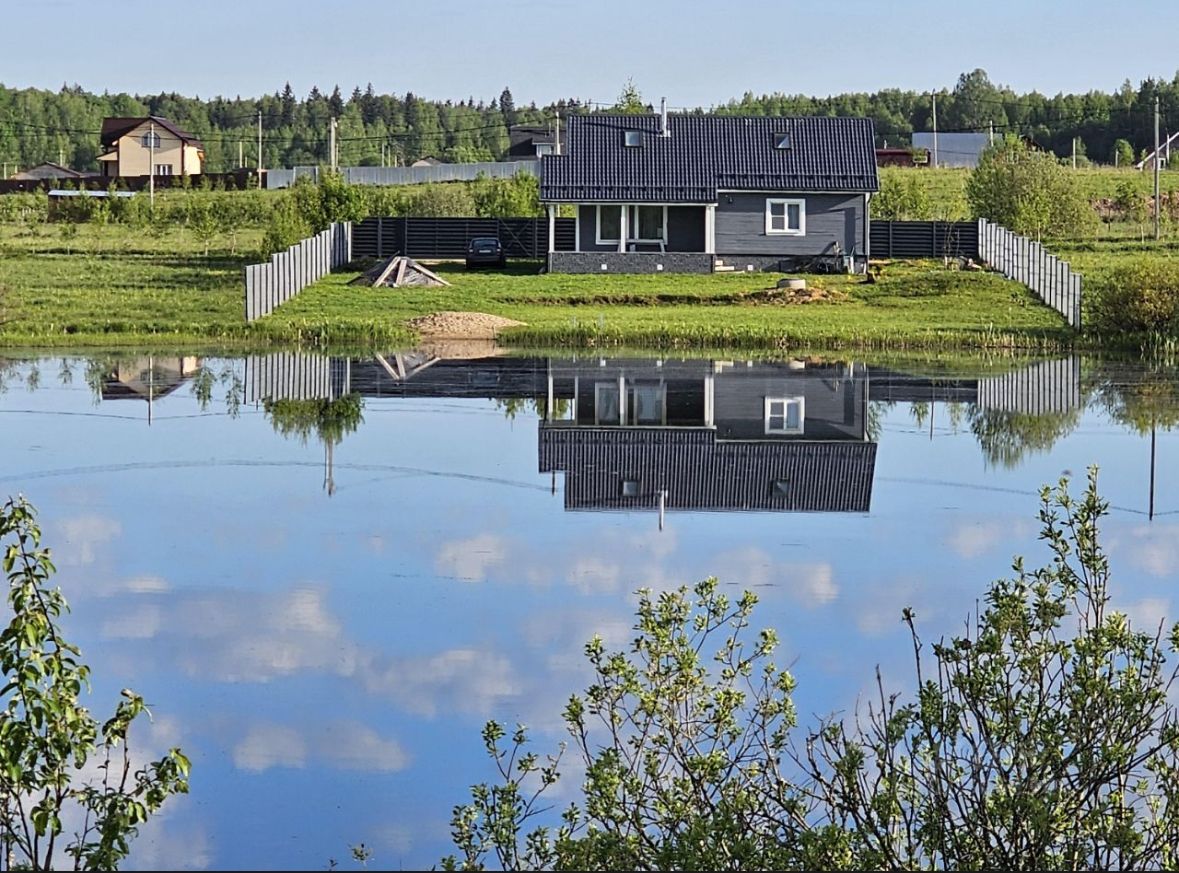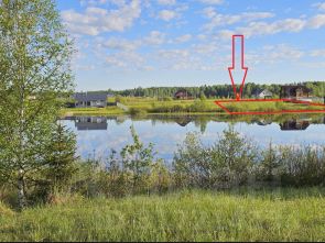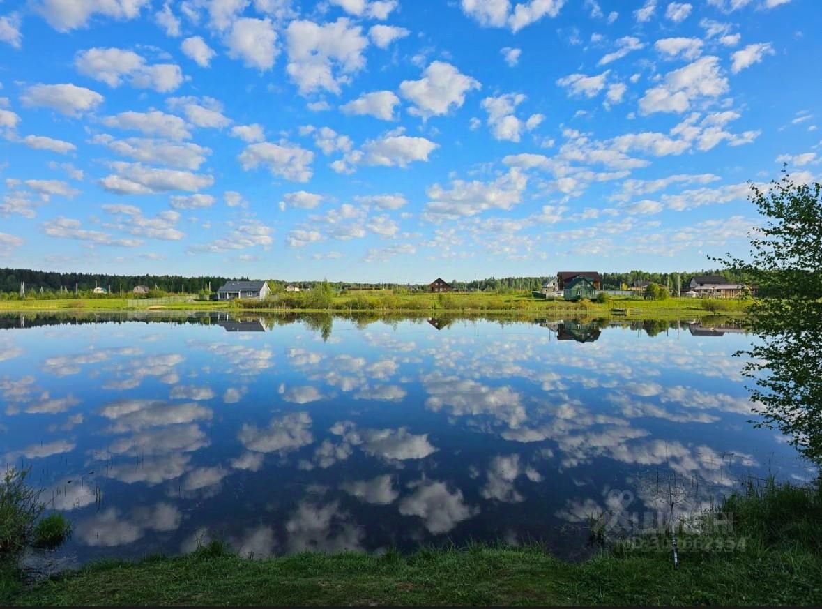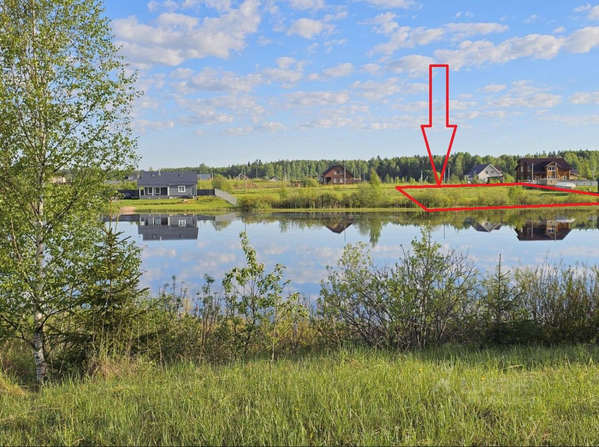 Ровный участок у воды. Озеро большое чистое. Ширина по воде на уровне участка от берега до противоположной стороны примерно 115 метров, в длину около километра. Видовые характеристики шикарные. По фото - между серым и зеленым домом два участка и наш правый.
