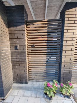 На участке площадью 496 кв. м: дом, забор, крытая стоянка (гараж) на 2 автомобиля, автоматические ворота с пульта, хозблок-мастерская, газон и маленький огород.