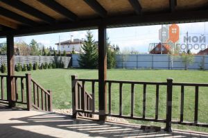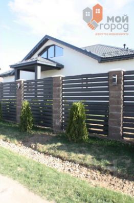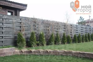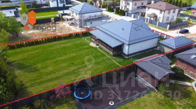 Ландшафт участка полностью оформлен: газон и вечнозеленые растения. Все дорожки вокруг дома и гаража вымощены камнем, что добавляет эстетики.