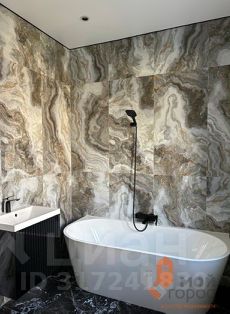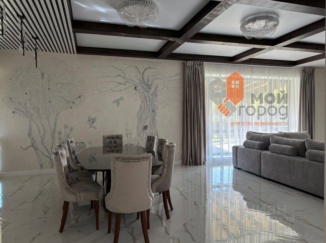 На 1-м этаже расположены три спальни, два санузла, постирочная, гардеробная и котельная. Просторная гостиная объединена с кухней и оборудована камином, её площадь составляет 65 квадратных метров. Отдельный выход на террасу, идеальную для завтраков и вечерних посиделок на свежем воздухе в любое время года. Холл площадью 43 метра. Вся площадь с подогревом полов.