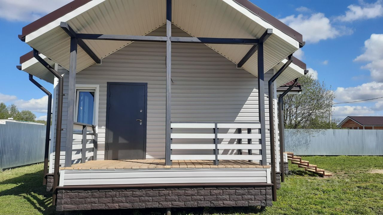 Продается новый дачный ДОМ на участке 6,42 сотки. Несмотря на небольшой размер очень уютный. Земля сельхозназначения. Дом каркасник: 2 жилых комнаты (2,8х2,8 метра каждая), большая кухня гостинная, кладовая, санузел, тамбур. Размер дома 6 на 9 метров с 2-мя террасами. Толщина утепления стен, пола и потолка 150 мм. утеплителем мин.плита плотностью 50. Высота потолка 2,5 метра. Отделка стен (кроме санузла - пластиковые панели) имитация бруса, отгрунтованные полупрозрачной качественной экокраской. Потолки натяжные (жилые комнаты), имитация бруса (кухня гостинная) и панели пластиковые (санузел). Пол ламинат в комнатах, утепленный линолеум в санузле. Качественно выполненная электрика с заземляющим контуром. Окна пластиковые с двойными стеклопакетами. Входные двери металические утепленные с тройным контуром терморазрыва. Канализация - автономная на 4-5 человек. В санузле бойлер горячего водоснабжения на 80 литров. Выполненна армированная бетонная подготовка под автомобильную стоянку на 2 автомобиля и заезд на участок. Ворота распашные. Участок огорожен по всему периметру оцинкованным металопрофилем. Участок выровнен без ям. За доп.плату в короткие сроки организую устройство скважины или колодца (в зависимости от желания и финансовых возможностей покупателя) с заведением водоснабжения в дом. Обмен на квартиру
