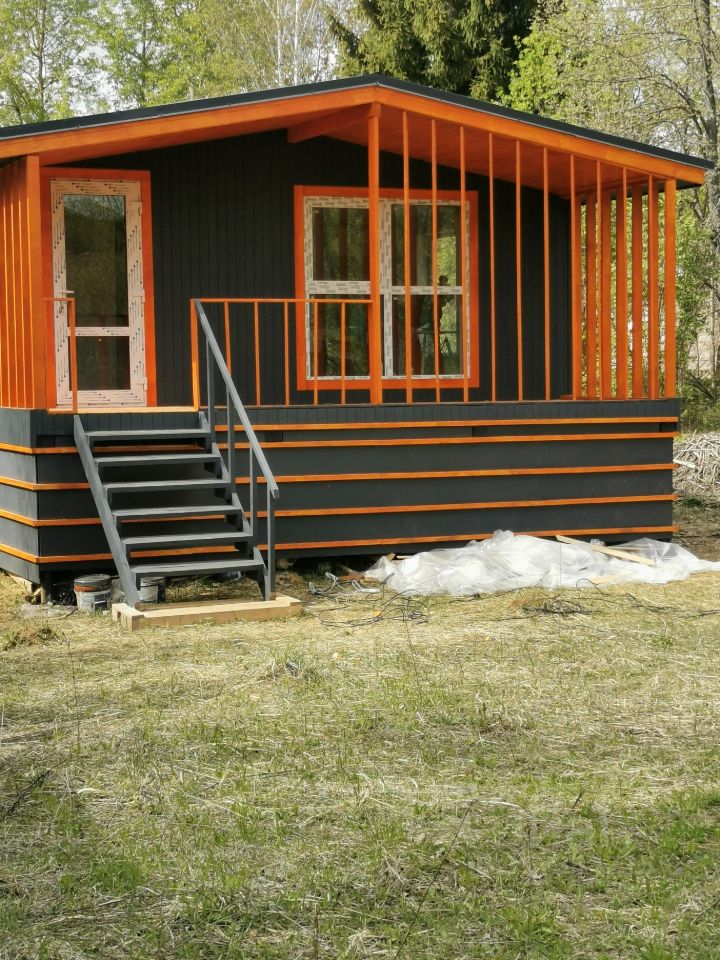 Дом 58 кв.м. жилая 47 метров: куня-гостинная, две спальни, санузел, кладовая, прихожая и крытая терраса. Дом каркасный. Утепление пол, стены, крыша -150мм плотной мин.ваты. Предназначен для круглогодичного проживания. Домик размещен в углу участка, с целью строительства большого дома. Дом стоит на кадастре, присвоен адрес.