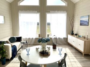 Панорамные окна позволяют наслаждаться красивыми видами на восходы и закаты, отдыхать на природе с комфортом вдали от городского шума. Асфальтированный подъезд к дому позволит комфортно проезжать к дому в зимнее время. Электрическое отопление и теплый пол в ванной комнате обогревают дом зимой. Инфраструктура коттеджного поселка Ambient Park в пешей доступности. Фруктовые сады в соседней деревне. Пляж в 5 км. Рыбалка в прудах соседних деревень. Рядом поле и вековой лес.