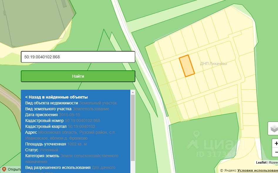 Кадастровый номер участка 50:19:0040102:*** указал продавец