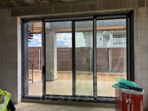 В гостиной столовой 3 метра высота на 3 метра ширины остекление и уставлен портал (выход на террасу) 3 места высота 4 метра ширина с газовым доводчиком.