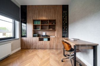 2 этаж: две мастер-спальни с гардеробными и ванными комнатами, кабинет, детская игровая комната, сделана по индивидуальному проекту с игровой зоной, детский санузел.