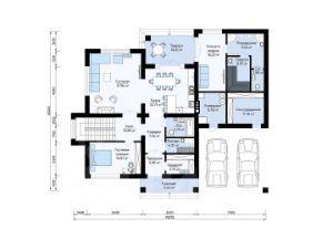 1 этаж, холл, гардеробная, постирочная, с/у, гостиная с камином, кухня-столовая с выходом на патио и гостевая комната .