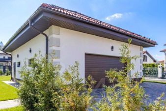 Отдельно стоящий гараж на три машины с оборудованной мойкой. Второй этаж гаража дополнен двухкомнатной квартирой для персонала.