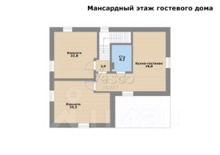Мансарда: кухня-гостиная (29,8), 2 комнаты (25,3 и 22,8), с/у (6,2).