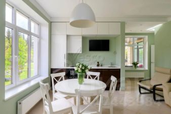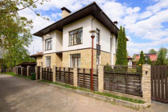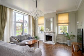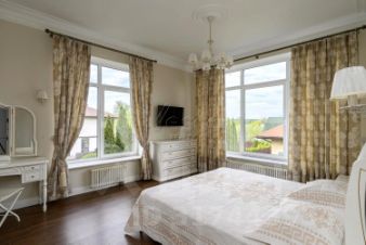 В доме выполнена качественная стильная отделка по дизайн проекту европейского дизайнера материалами европейских производителей: мрамор, дерево, керамогранит. Санузлы отделаны итальянской плиткой с декором, стены английские обои, декоративная штукатурка, краска, полы бельгийский ламинат. Сантехника итальянская, кондиционеры Panasonic, полы с подогревом на первом этаже и в санузлах, отопление: радиаторы Arbonia, внутрипольные конвекторы, отделка камина и подоконники из мрамора, постирочная оборудована техникой Miele, мансардные окна VELUX, окна KBE.