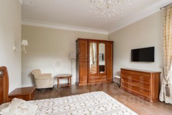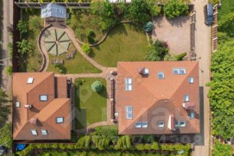 В основном доме: гостиная-столовая с мраморным камином и выходом на террасу, кухня с кладовой комнатой, 6 спален, кабинет и жилая комната свободного назначения, 4,5 с/у, функциональная постирочная, высокие потолки - 3,5 м на первом этаже и 3,2 м на втором.