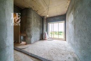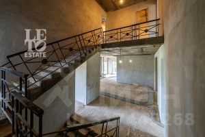 Дом построен в классическом стиле. Фасад дома без отделки, внутри проведены работы по выравниванию стен, электричество разведено по всему дому, включая цоколь. Дом отапливается. Организован подогрев террас. Фундамент монолитная плита, стены кирпичные, лестница монолитная. Возможно установить лифт. Цоколь сухой, по периметру дома проведены работы по водоотведению воды от дома в ливневую канализацию поселка. Есть проектная и рабочая документации по внутренним строительным работам. Дома с обеих сторон заселены, строительные работы не ведутся.