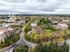 Участок, площадью 55 соток, прямоугольной формы. На участке проведены ландшафтные работы, выстелен газон, есть выход в парк. По периметру дома проведены дренажные работы. Все коммуникации центральные газ, водоснабжение, электричество, канализация, в т.ч. ливневая.