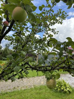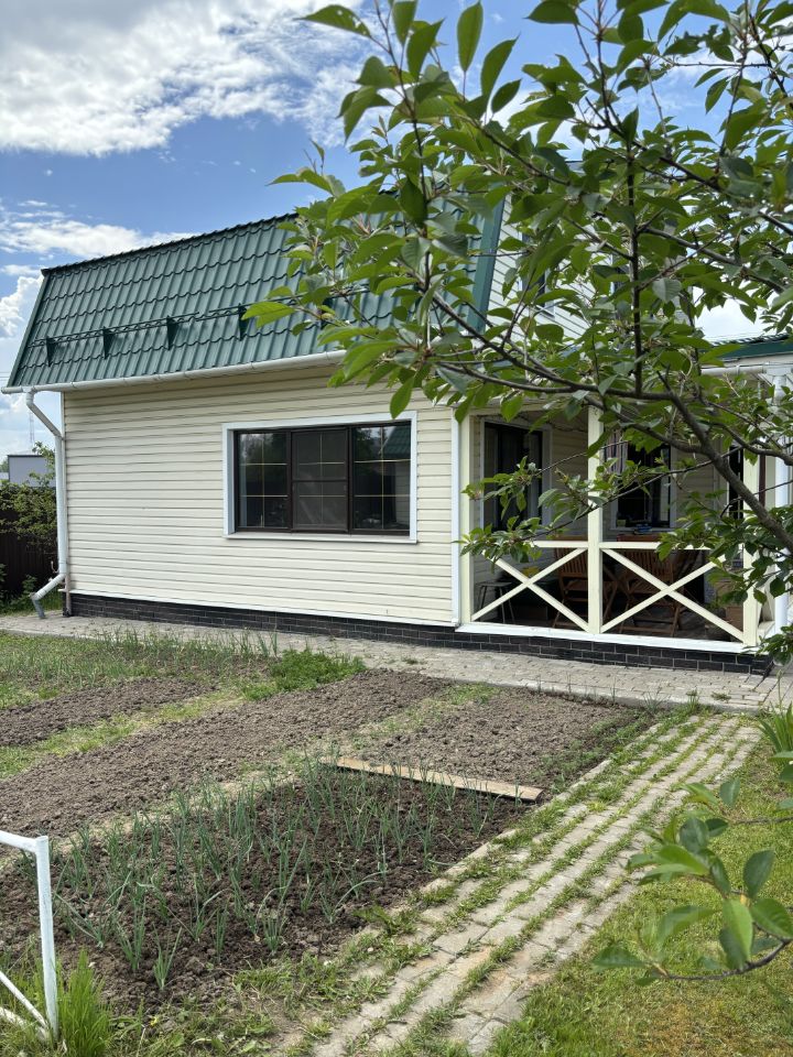 Продам уютный дом в деревне (не СНТ, нет никаких взносов/сборов, оплата по индивидуальным счетчикам), земля ИЖС, с пропиской, в тихом живописном месте, для круглогодичного проживания. Общая площадь дома 111,4 м², ухоженный участок с плодовыми деревьями, кустарниками, газоном и виноградником. Участок — 13 соток. Дом двухэтажный, с удобной планировкой: на первом этаже — гостиная, кухня, санузел с сауной, отделанной липовой вагонкой. На втором этаже — три комнаты и просторная лоджия зимний сад.