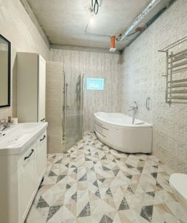 По отделке остались финальные штрихи, в основном это потолки и лестница. Использовались весьма представительные и дорогие материалы. Мраморная плитка на полу. Начат монтаж кухни (если вы хотите поставить свою, то эту вывезем без проблем, договоримся). Часть комнат готова полностью можно уже заехать и жить.