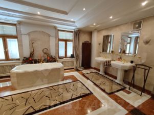 Особняк в современном классическом стиле, материал стен кирпич, имеет 4 этажа, включая подземный этаж и мансарду, высота потолков 3,0 м, полностью меблирован, оснащен всей необходимой техникой, общей площадью 676,8 кв. м., с качественным, стильным ремонтом с использованием дорогих материалов с гаражом - 35 кв.м. на 2 автомобиля.