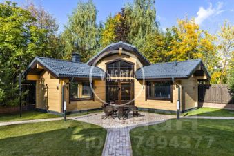 1-й этаж: прихожая с гардеробными, кухня с кладовой, столовая, гостиная со вторым светом, 2 гостевых спальни, с/у, каминная, котельная, терраса.